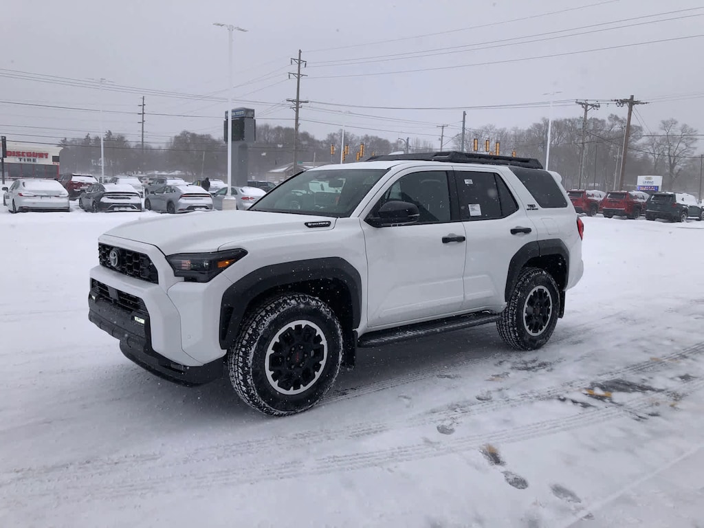- Black honeycomb-style grille, mirror caps, door handles and overfenders; color-keyed rear spoiler; black "trd off road" and "4runner" badges.